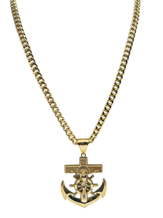 10k gold Cuban chain with pendant of Anchor of Jesus Christ 24in 6.1mm