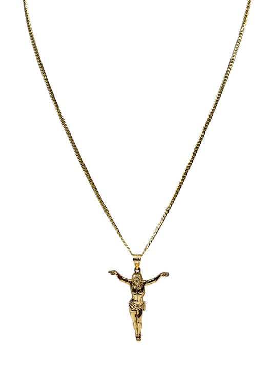 10k gold Cuban chain with Jesu Christ pendant 22in 1.8mm