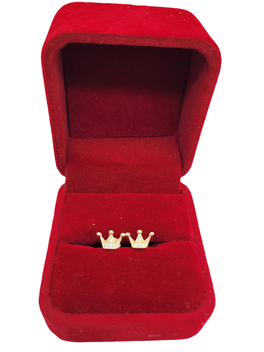 10K gold earrings. crown CZ stone.
