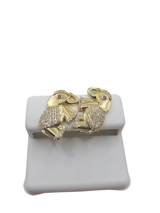 10K gold earrings. Elephants. CZ stone.