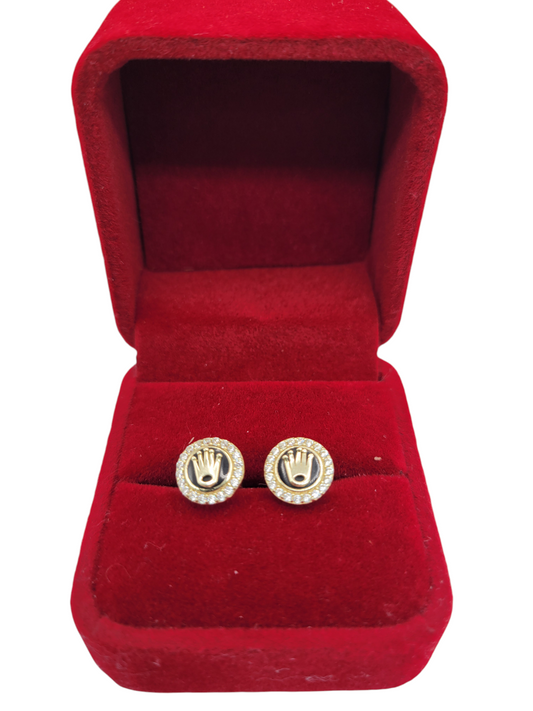 10K gold earrings. Crown with CZ stone.