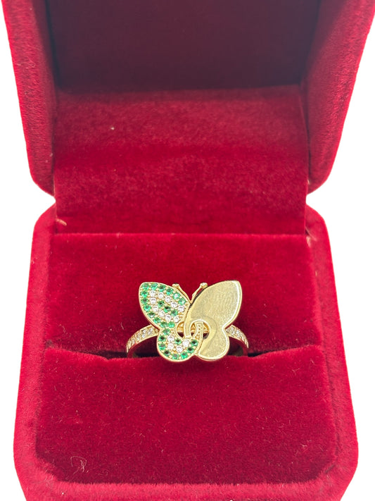 10k gold ring of butterfly with green and withe cz stones .size 7