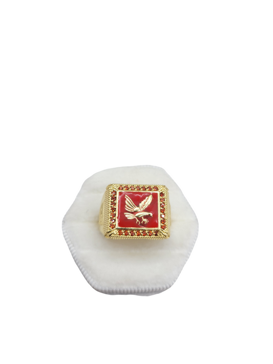 10K Gold Ring. Eagle. Red CZ Stones. Size 9.5