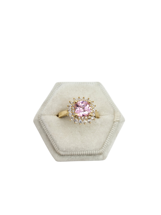 10K gold ring, pink flower. Size 7.5 CZ stone