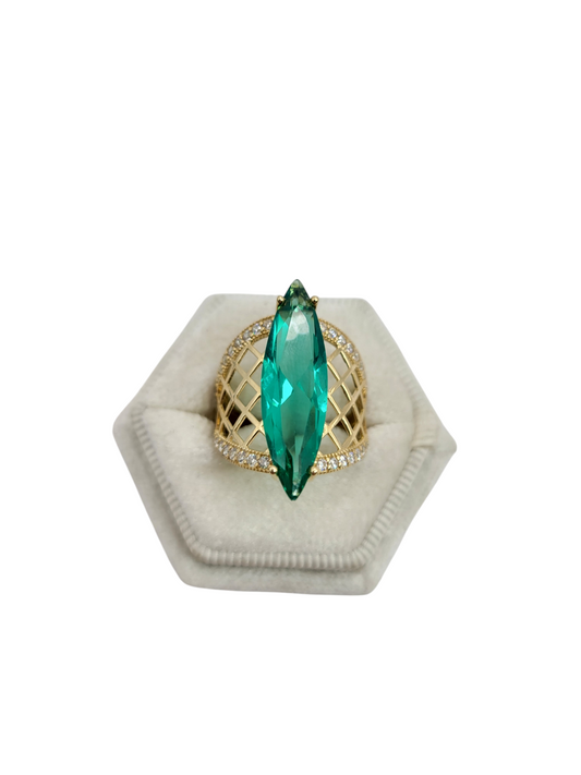 10K Gold Ring Blue Heart. Size 7, CZ Stone