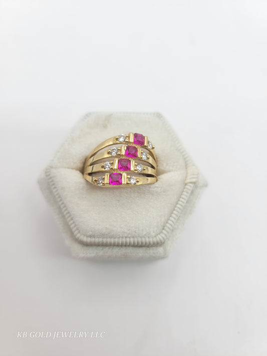 10K Gold Ring. 4 Stones. Size 7. CZ Stone