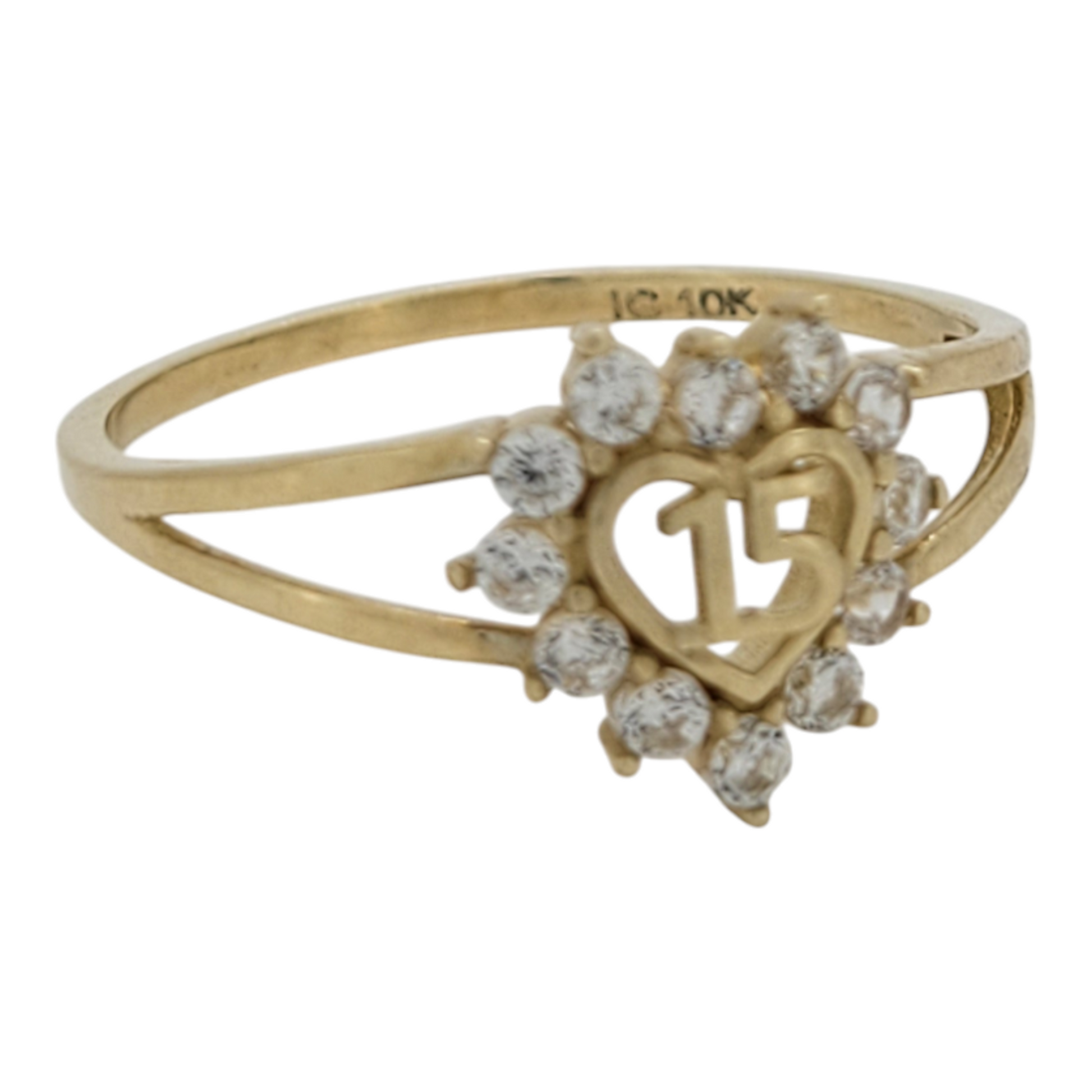 10K gold ring. Quinceañera. Heart with white CZ stone. Size 7