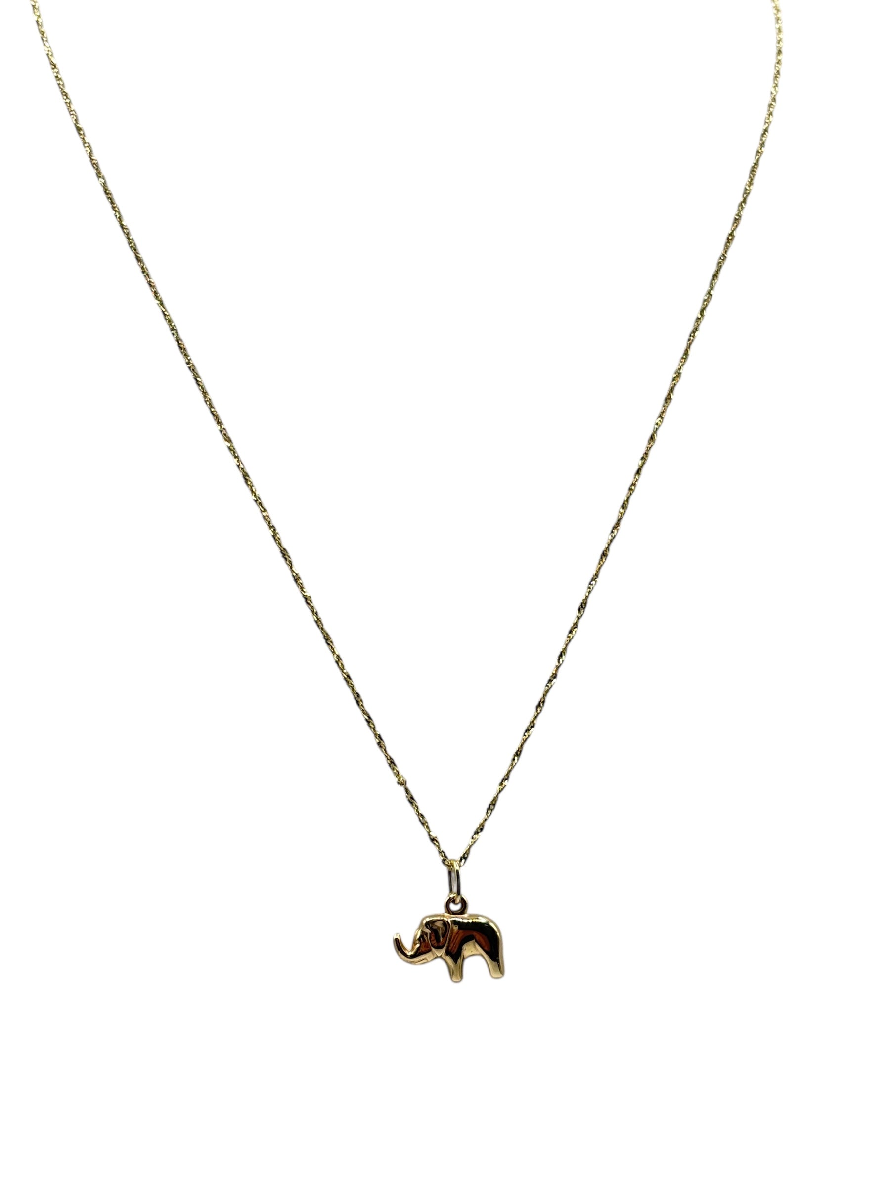 10k gold chain Singapore cut with elephant pendant 18in 0.9mm