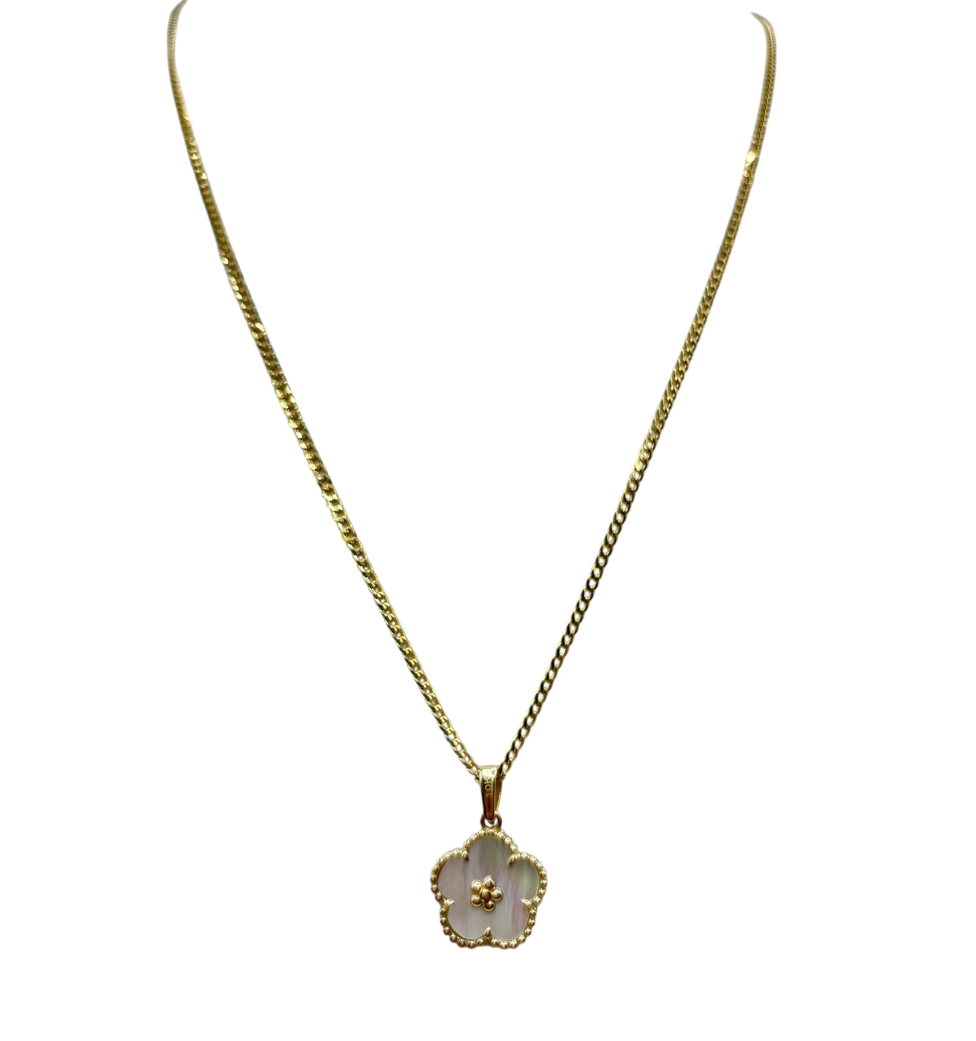 10k Gold Cuban Chain with flower pendant 20in 1.8mm