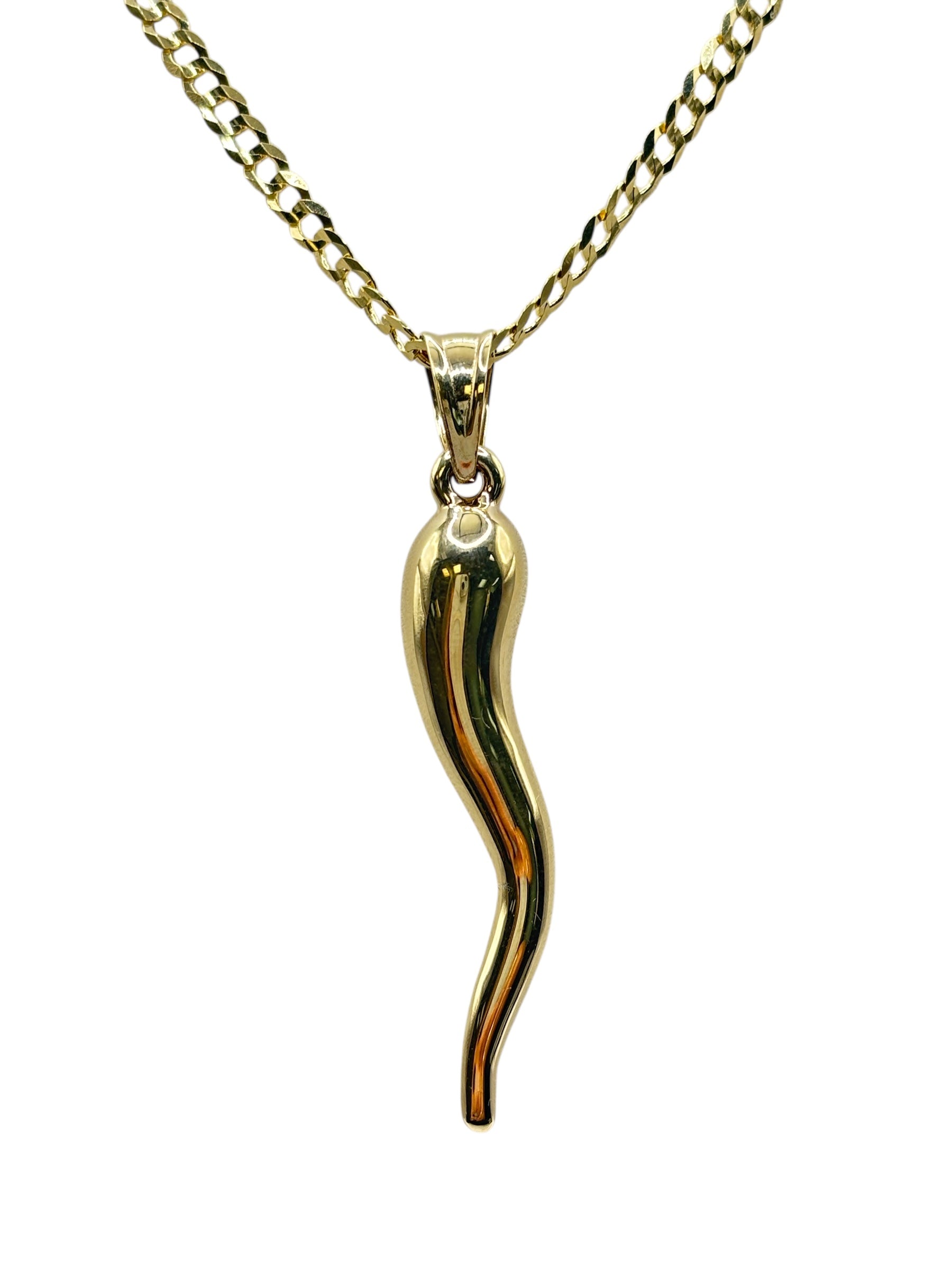 10k gold Cuban chain with Italian horn pendant 24in 3.2mm
