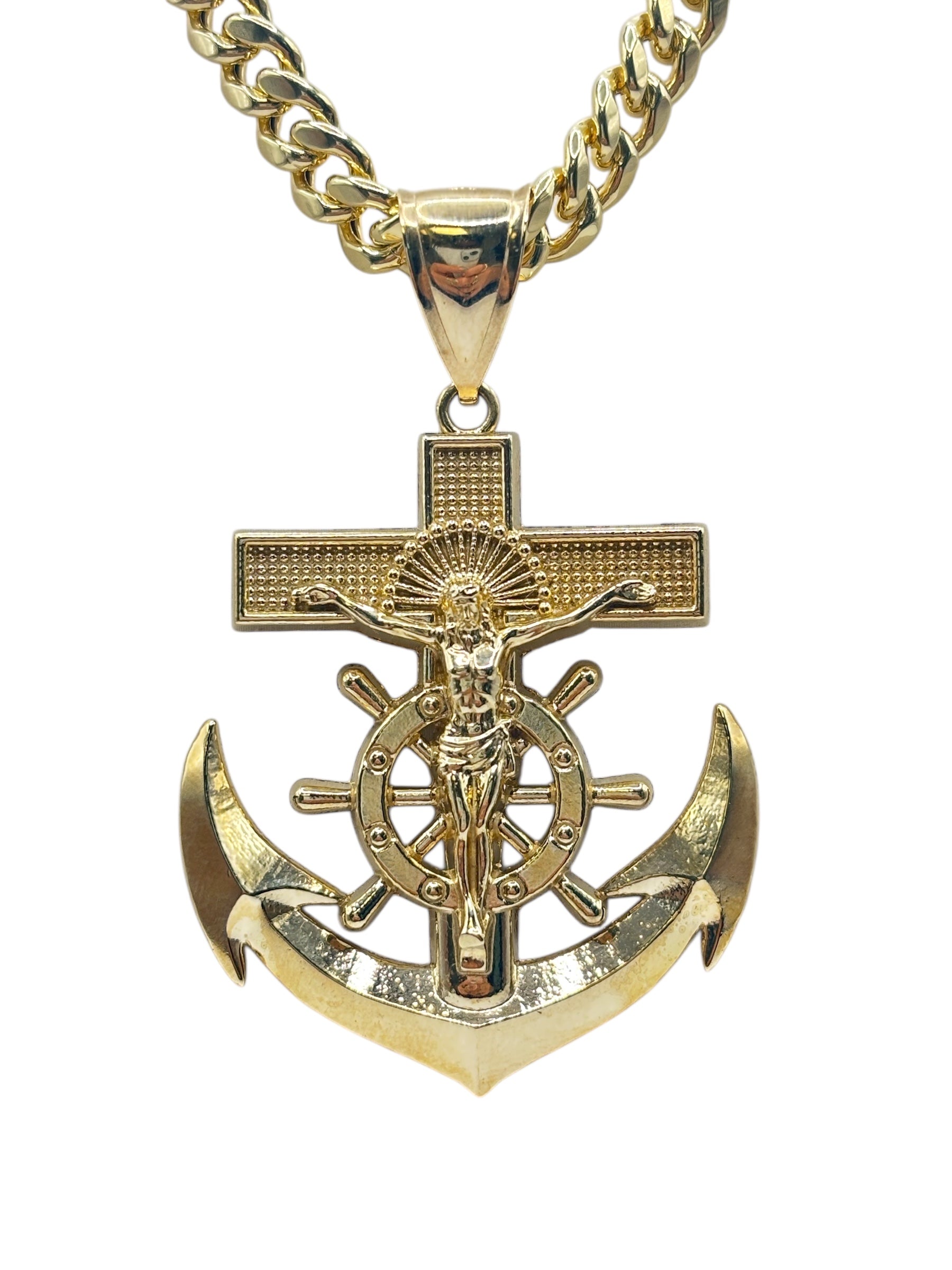 10k gold Cuban chain with pendant of Anchor of Jesus Christ 24in 6.1mm