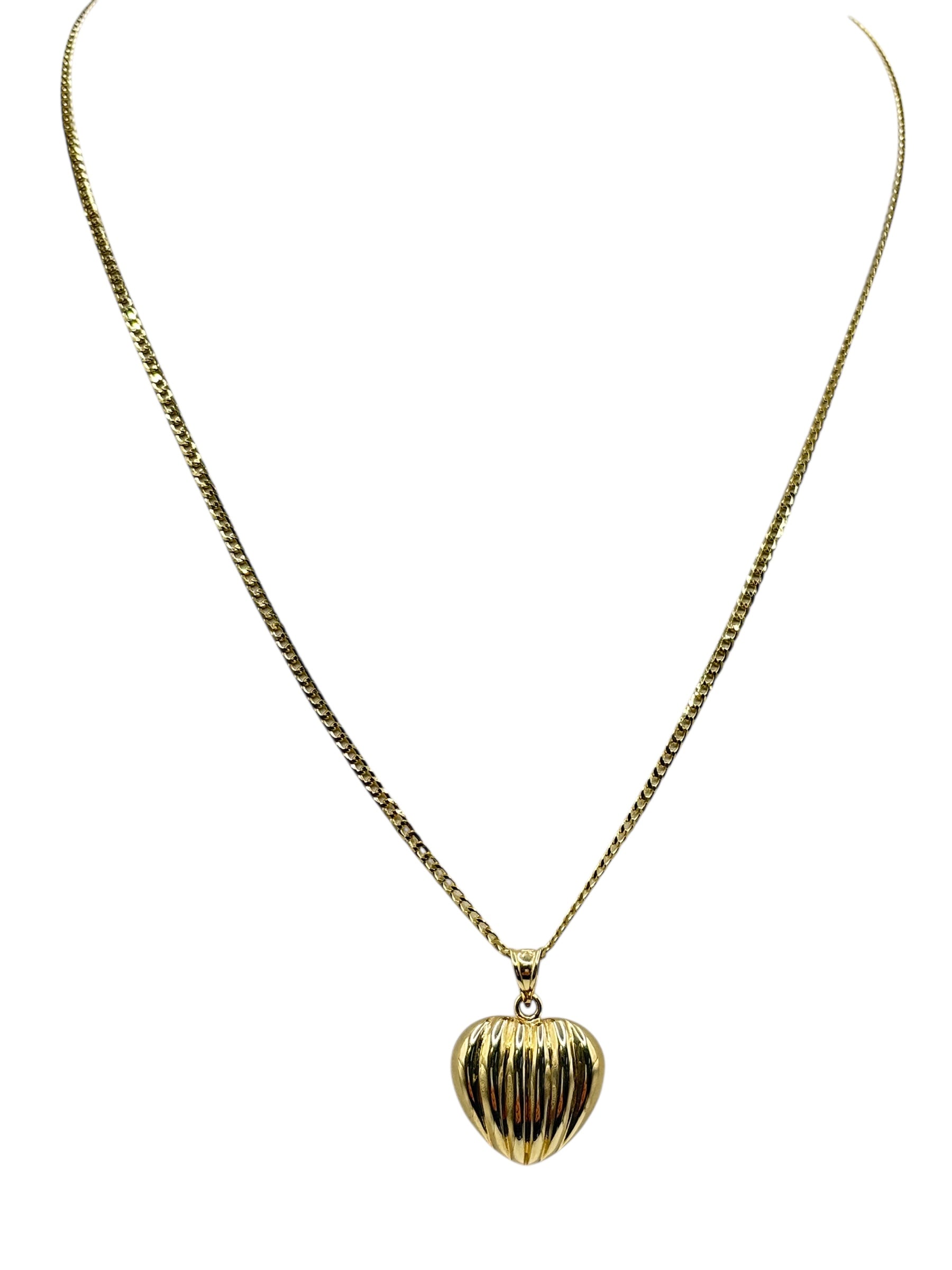 10k gold Cuban chain with puffed heart pendant 18in 1.9mm