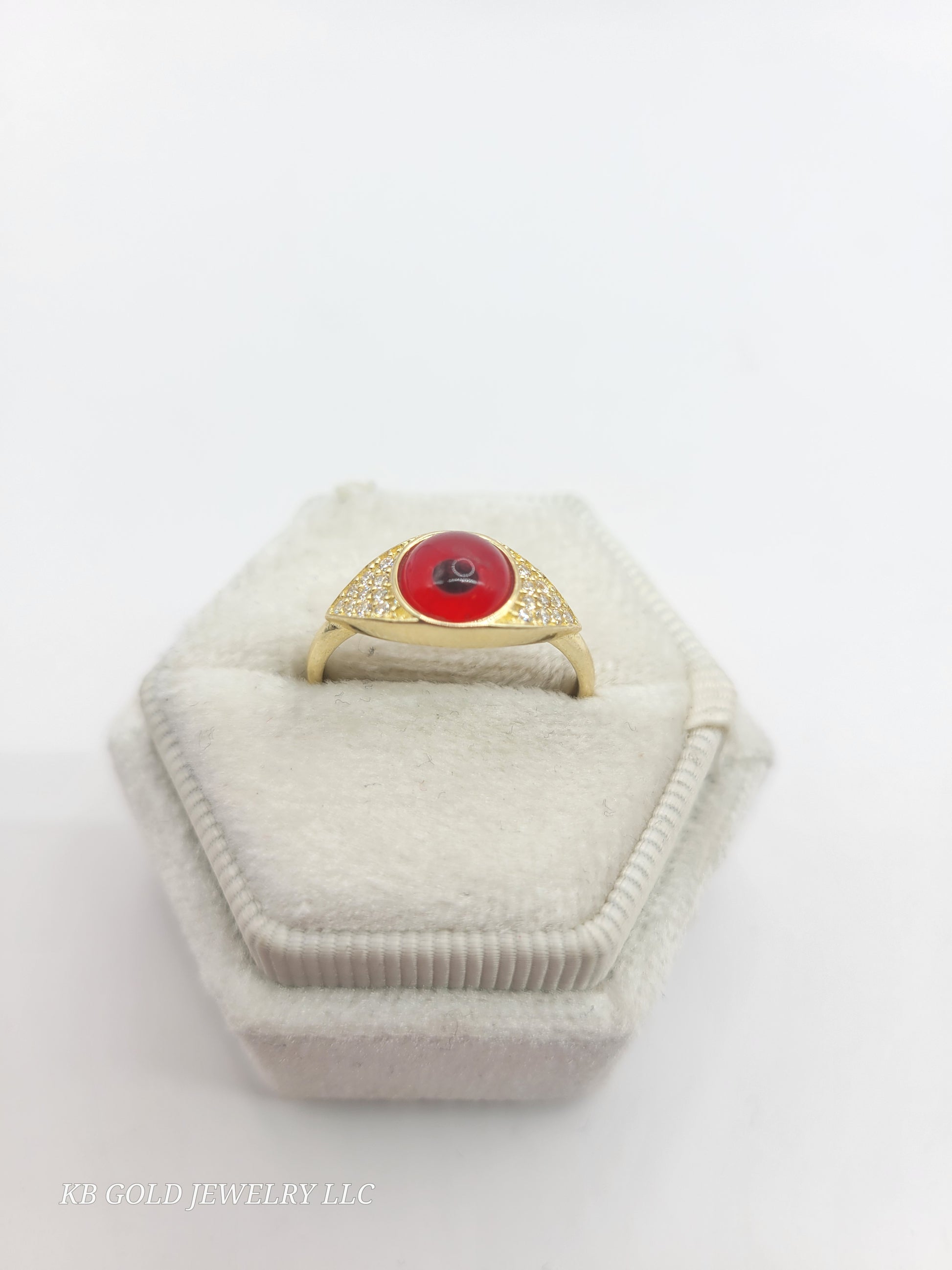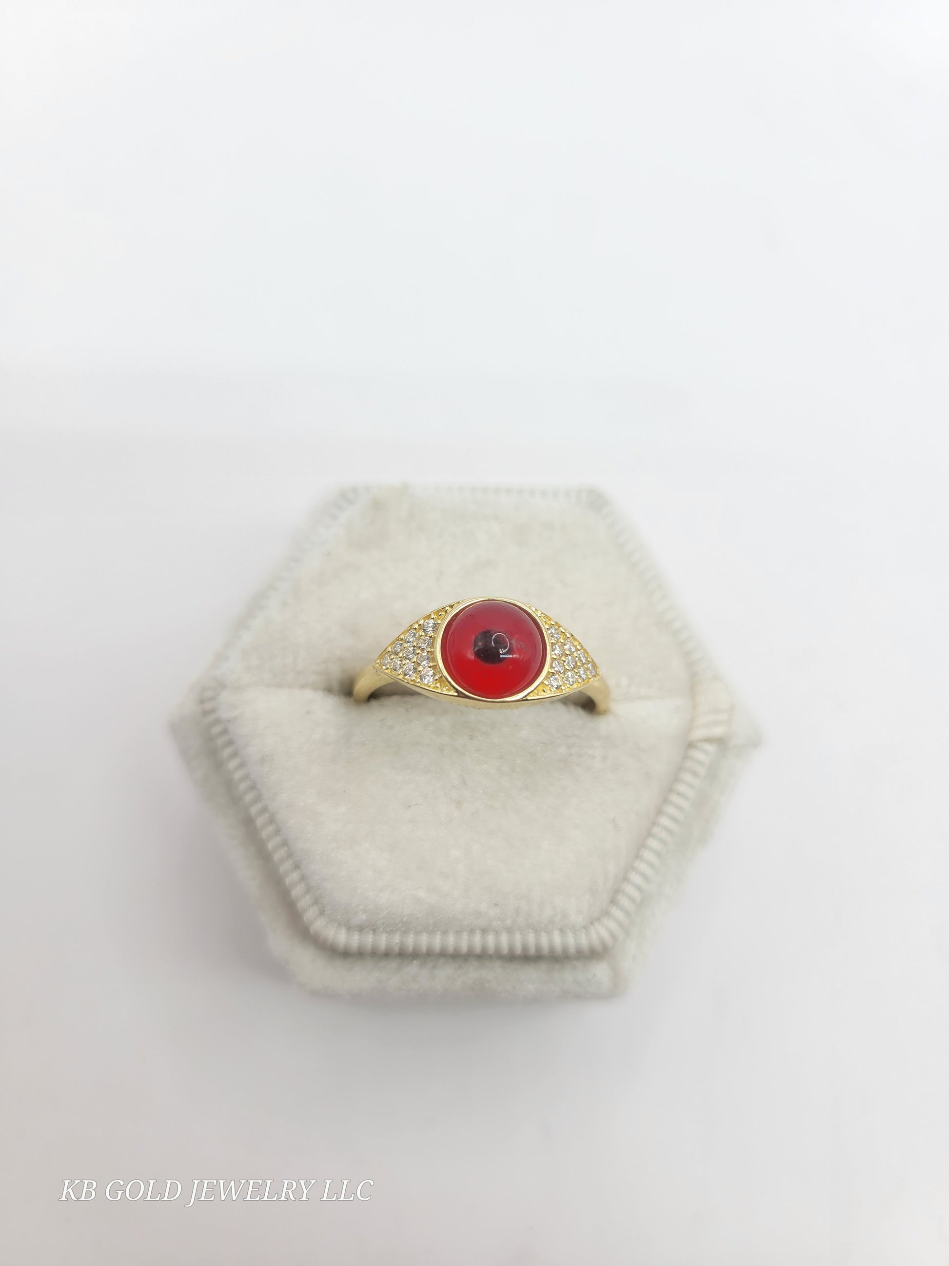 10K Gold Red Eye Ring. Size 7. CZ Stone