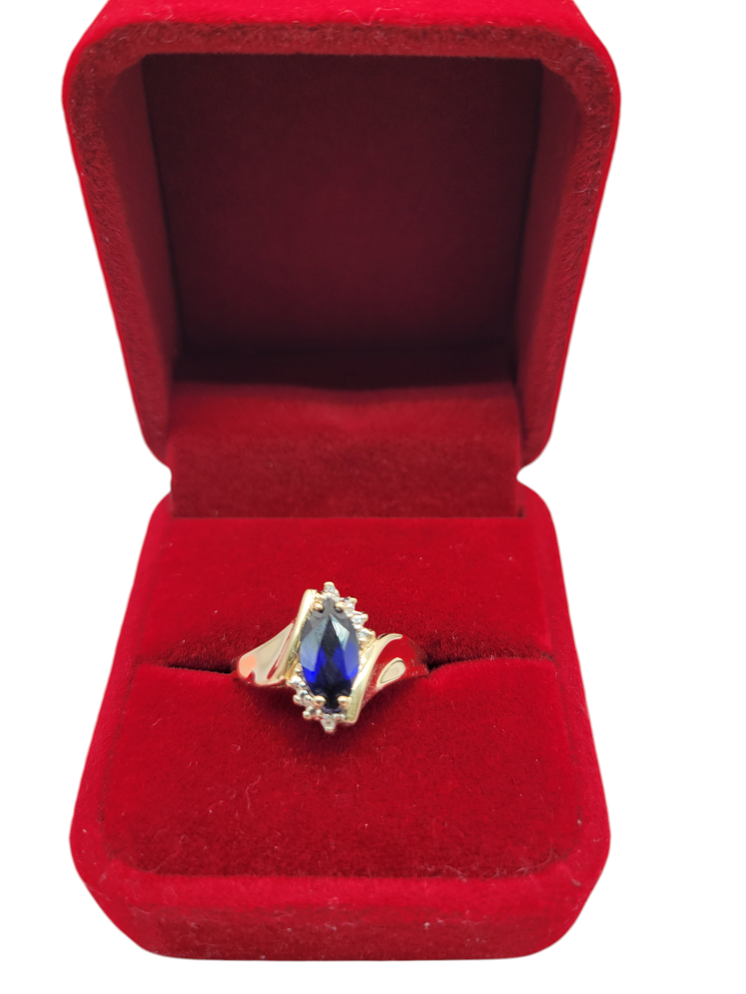 10K gold ring. Rectangular blue CZ stone. Size 8.5