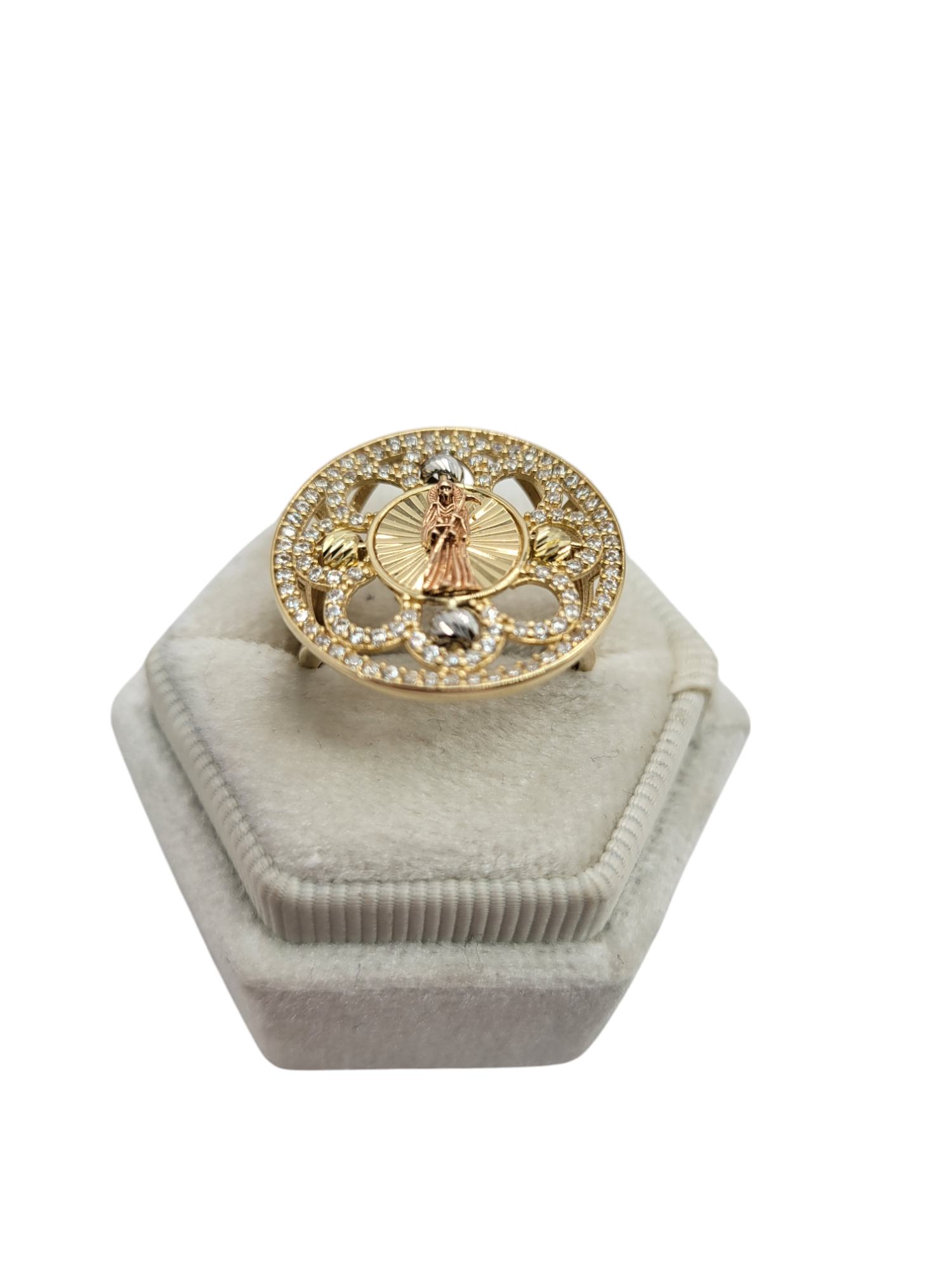 10K gold ring, Santa Muerte. Size 8. CZ stone