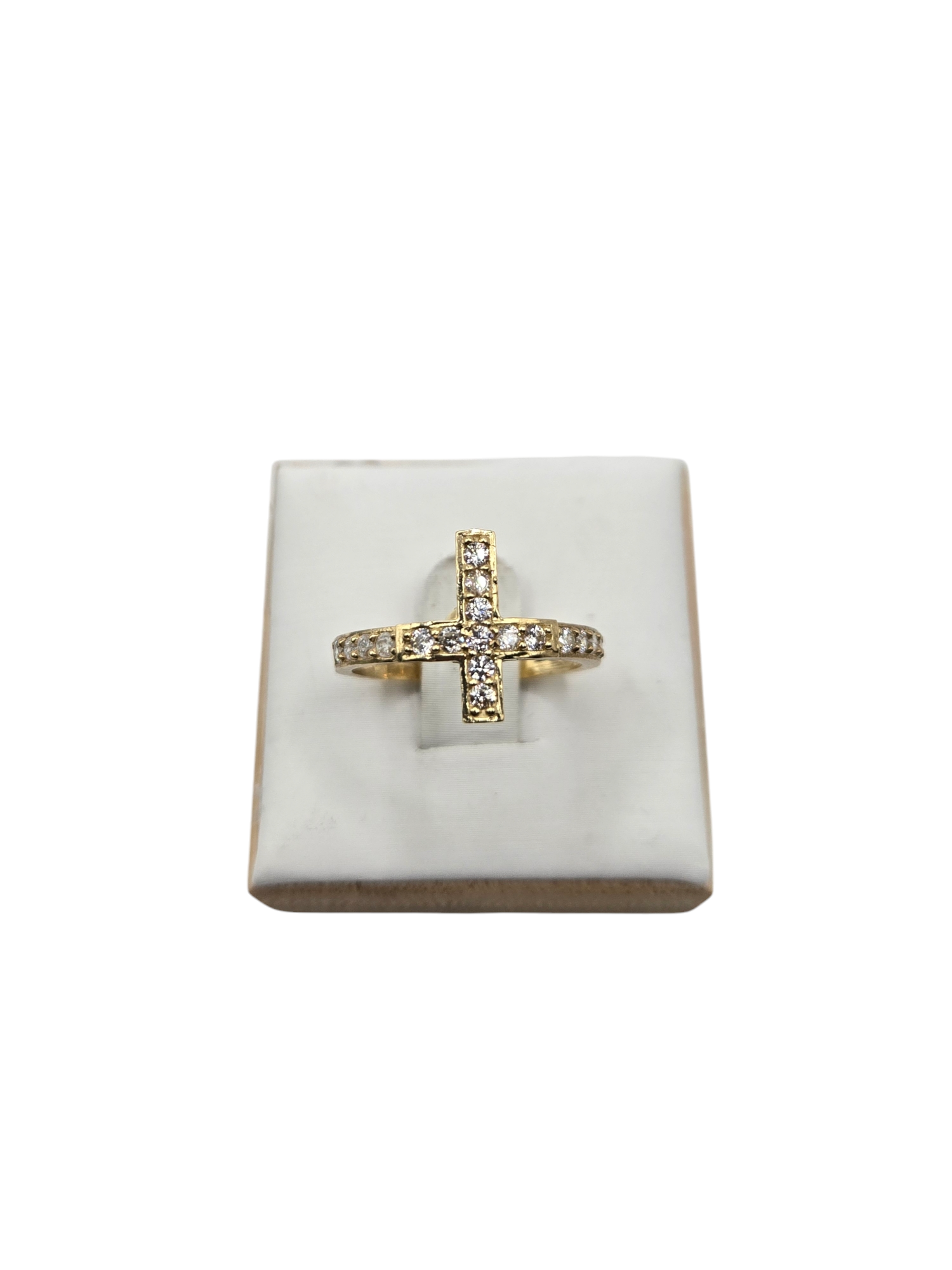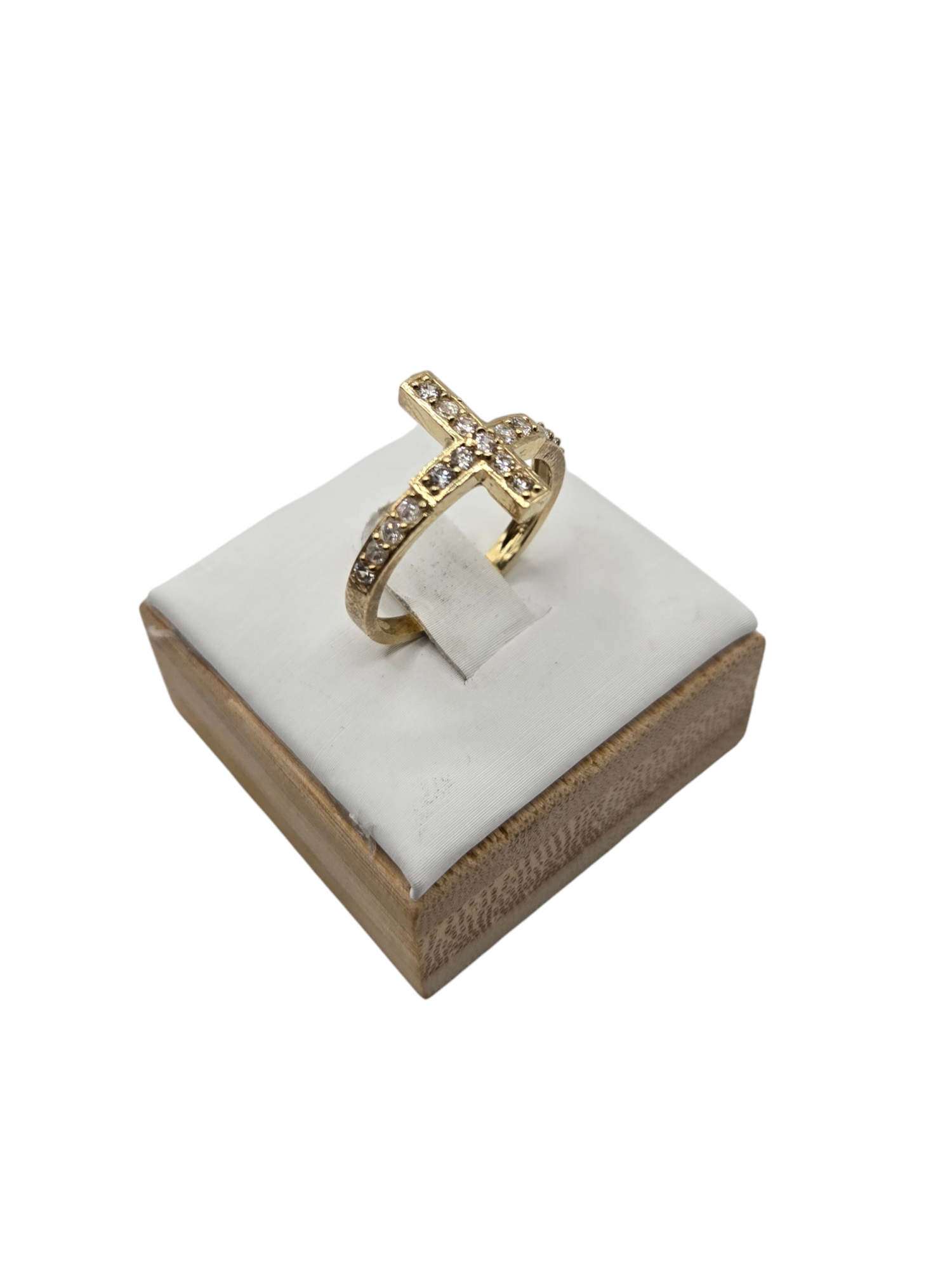 10K Golden Ring Cross Style, Size 6.5 CZ stones