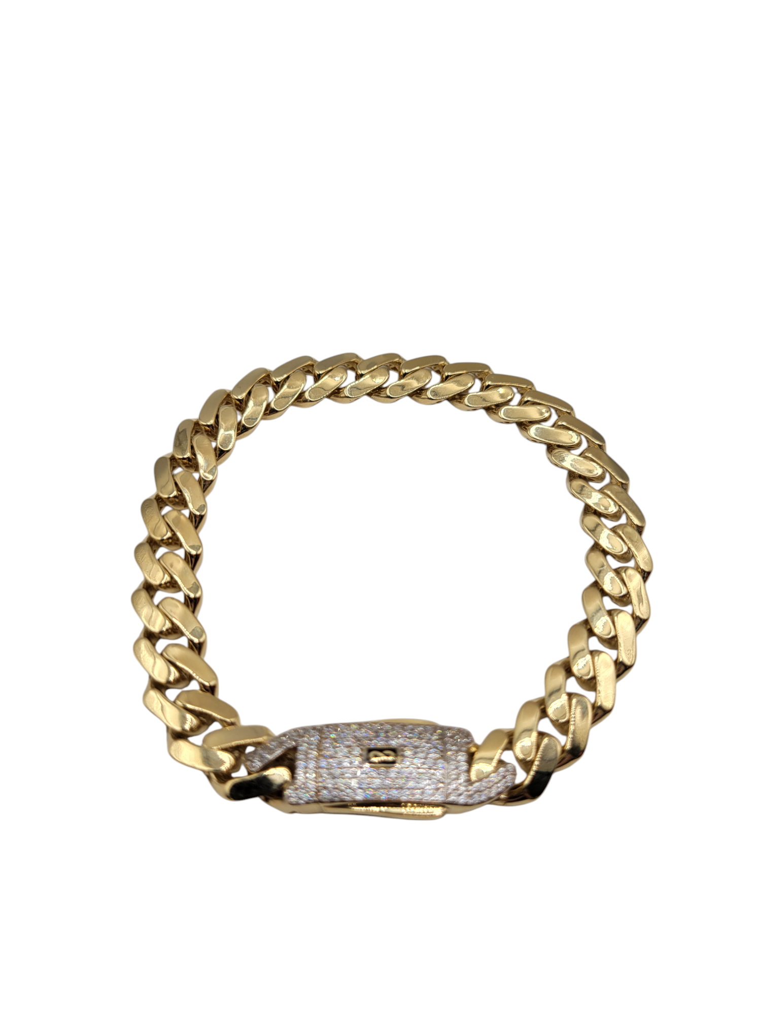 Decrease quantity for 14K gold bracelet. Clasp with CZ stone. 8in . 9mm