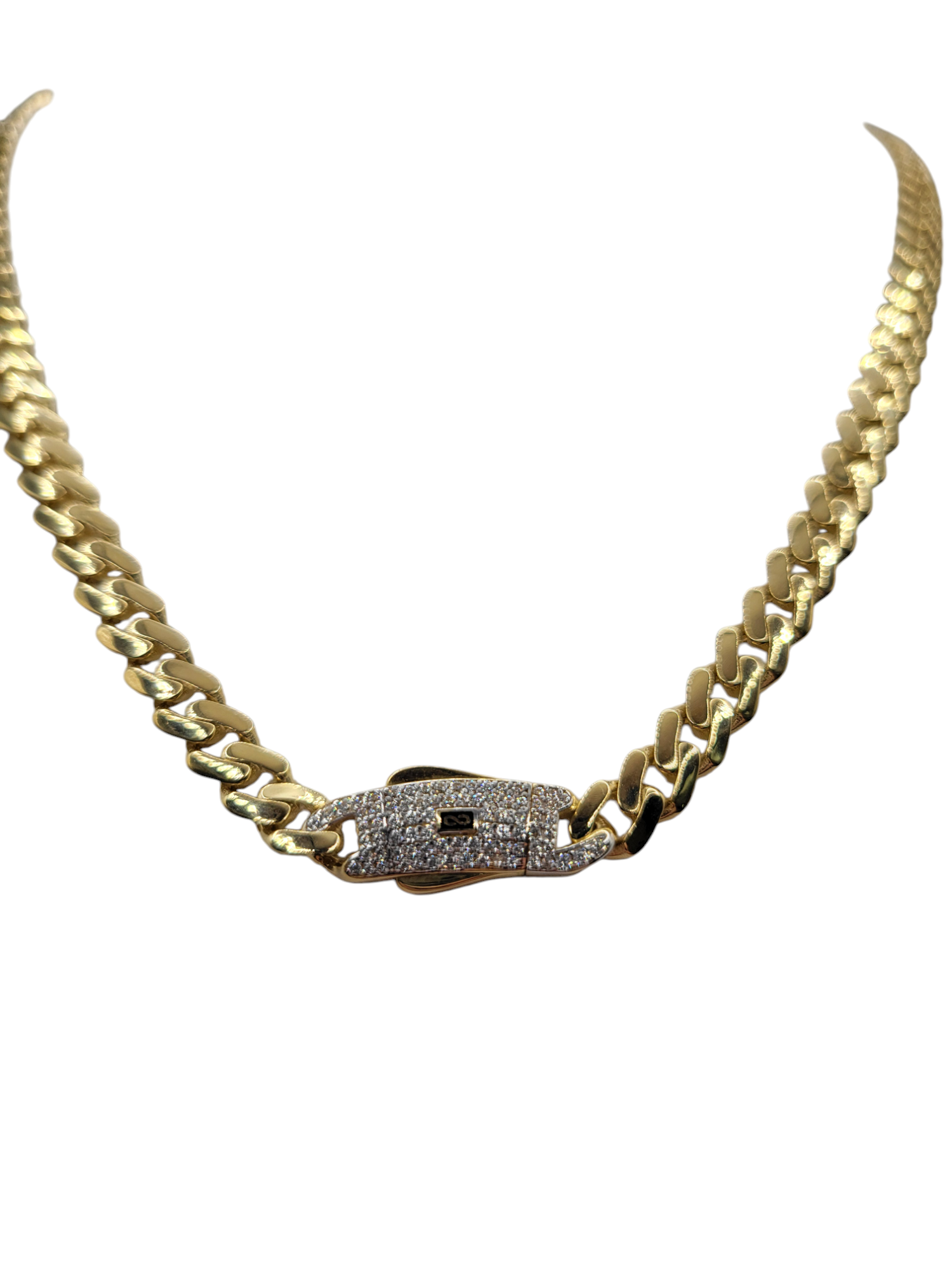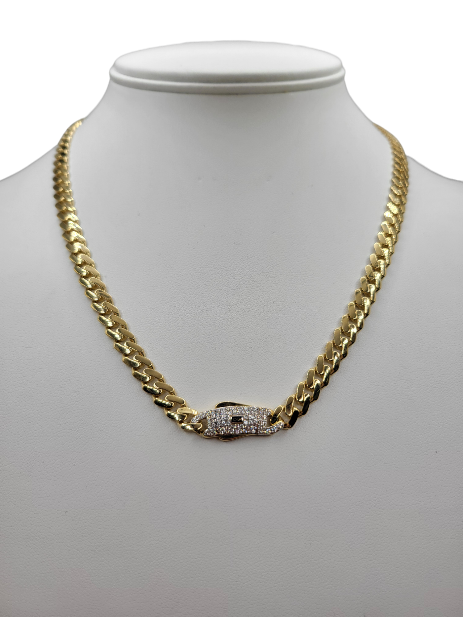 14K Gold Cuban Chain. Monaco Style. CZ Stone Clasp. 18in. 6mm