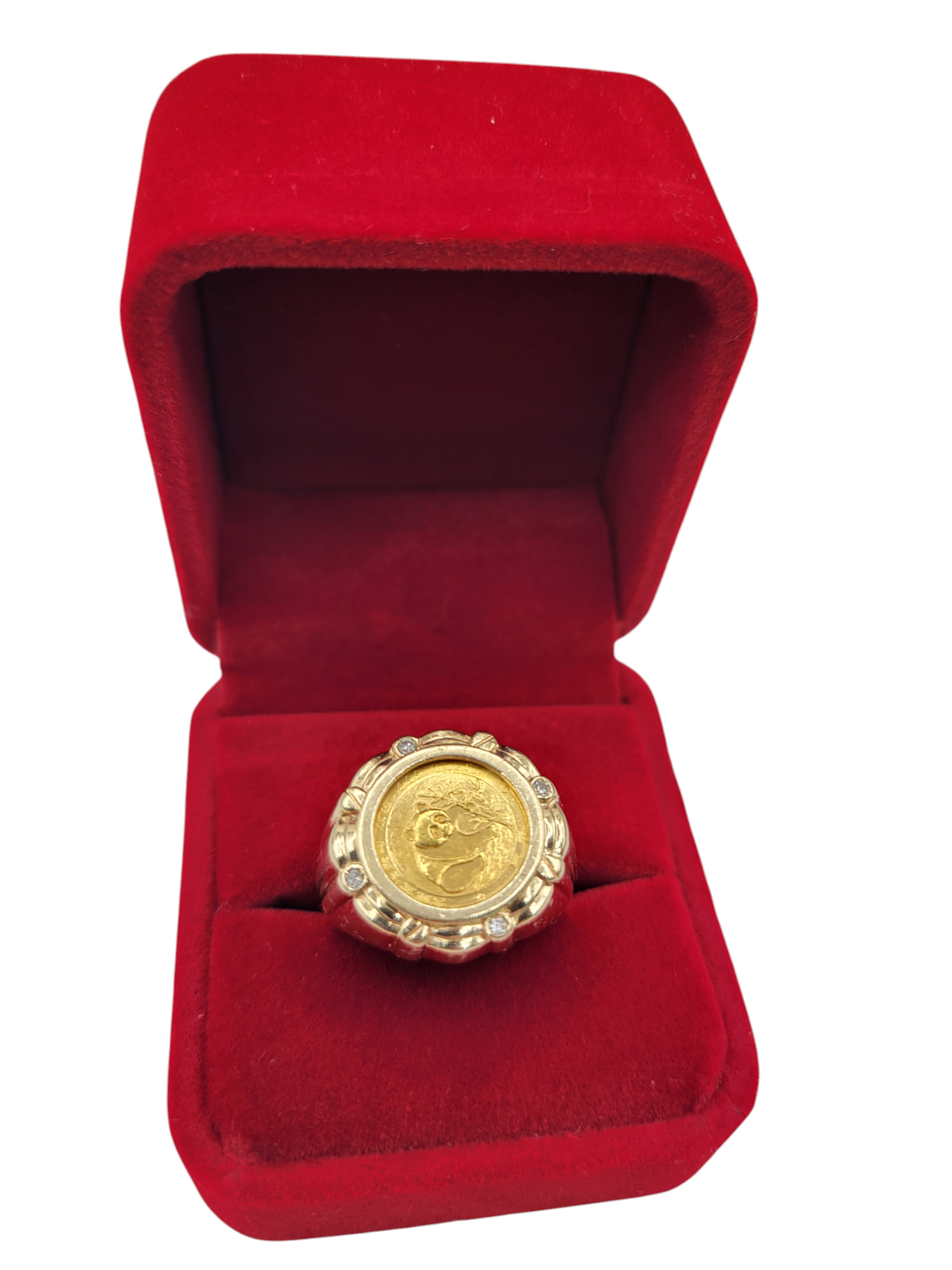 14K Gold Ring with 24K Center. Panda. Size 9.5