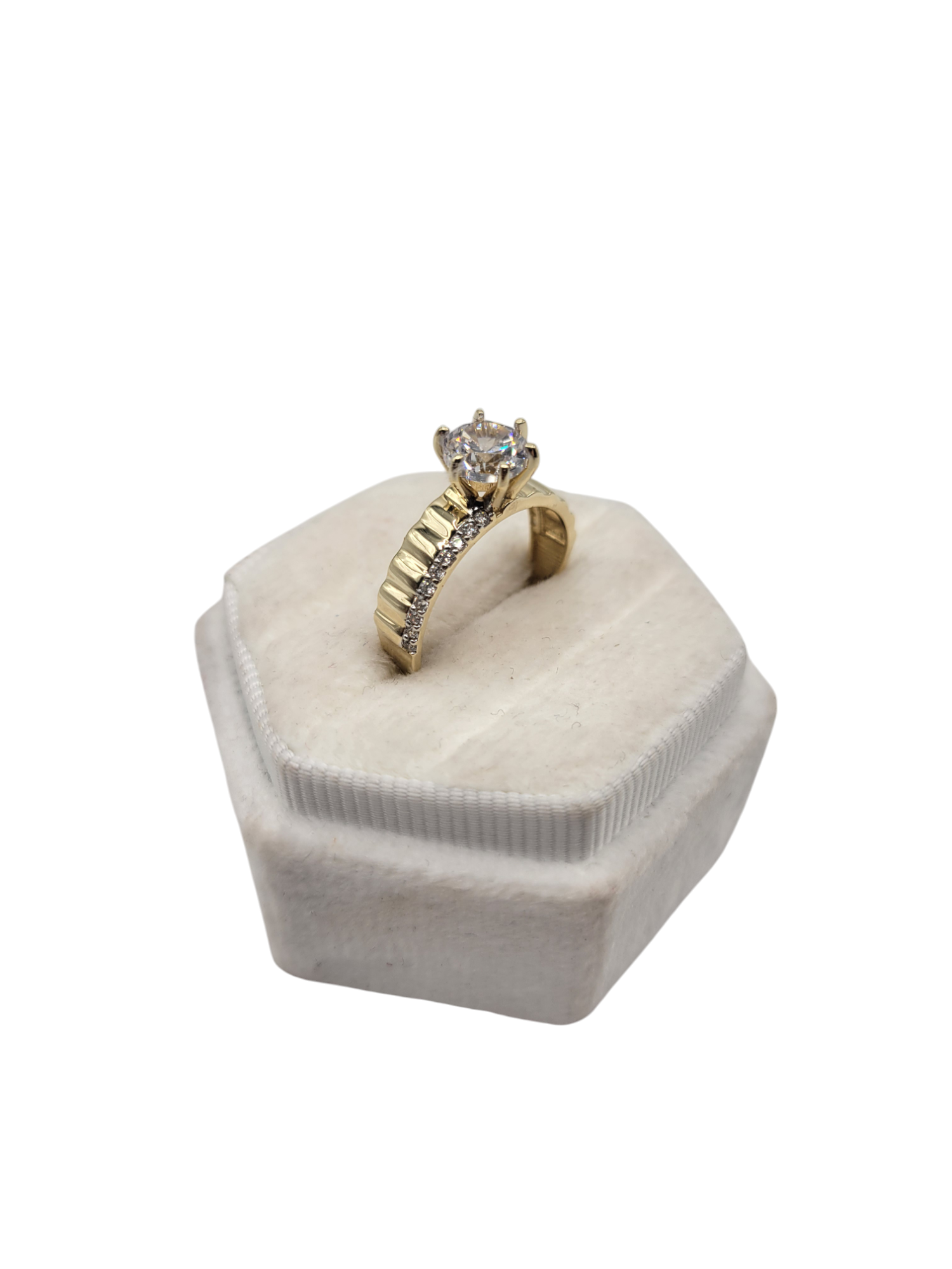 Decrease quantity for 14K gold wedding ring with CZ stones. Size 7